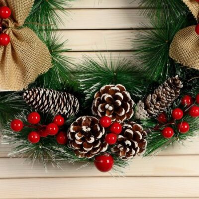 Венок новогодний d=34 см «Зимнее волшебство. Уютная сказка», с ягодами и шишками. Приготовьтесь встретить зимние праздники с особой теплотой и красотой благодаря очаровательному украшению. <ul> <li> <strong> Яркость и контраст:</strong> венок привлекает внимание и создает праздничное настроение.</li> <li> <strong> Универсальность применения:</strong> отлично сочетается различными элементами декора.</li> <li> <strong> Долговечность:</strong> искусственные материалы обеспечивают устойчивость к внешним воздействиям, позволяя использовать венок несколько сезонов подряд.</li> </ul> Добавьте в свой дом частичку зимней сказки! Венок станет источником радости для всех, кто переступит ваш порог. Создайте атмосферу праздника, где каждый уголок будет наполнен светом и уютом!