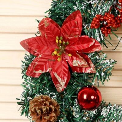 Венок новогодний d=36 см «Зимнее волшебство. Шишки», с красными цветами. Погрузитесь в атмосферу волшебства зимних праздников с великолепным венком, который станет ярким акцентом вашего интерьера. Венок отличается долговечностью и стойкостью к внешним воздействиям, что позволяет использовать его не один сезон. Классический стиль оформления делает его универсальным элементом декора, который легко впишется в любой интерьер, добавляя ему уюта и праздничного настроения. Не упустите возможность украсить свой дом этим замечательным венком, который станет не только украшением, но и символом теплоты и радости зимних праздников. Создайте уютную атмосферу и подарите себе и своим близким незабываемые моменты счастья!