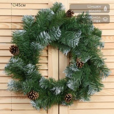 Главная » Товары для детей Венок новогодний d=45 см Просмотров 3 Венок новогодний d=45 см «Рождественский. Белоснежный» с шишками, золотистый. No brand