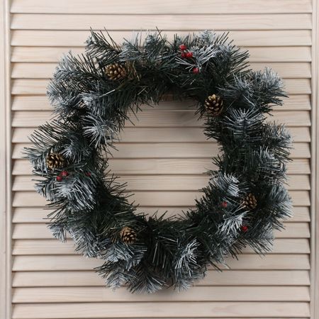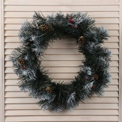 Главная » Товары для детей Венок новогодний d=45 см Просмотров 3 Венок новогодний d=45 см «Рождественский белоснежный» декор шишка золото, иней, ягода. No brand