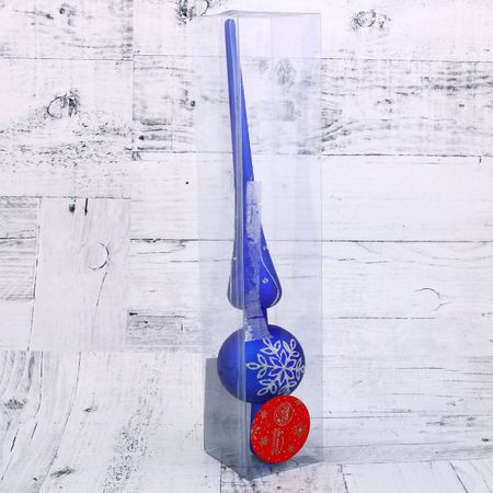 Верхушка на елку «Морозная снежинка» 5.5×28 см, синий. Пусть зима встанет во главе вашей елки. Ёлочная верхушка «Снежинка» — это финальный акцент праздника, который задает тон всей композиции. Синий пластик и резной узор делают ее похожей на застывший мороз — четкая, но при этом мягкая по смыслу. Идеально для тех, кто ценит силу простых форм и хочет завершить образ елки с характером. <ul> <li> <strong> Форма верхушки:</strong> вместо стандартной звезды — снежинка. Подходит тем, кто любит необычные решения и свежие идеи в оформлении.</li> <li> <strong> Синий цвет:</strong> ассоциируется со спокойствием зимней ночи, глубиной неба и холодным светом луны над снегом.</li> <li> <strong> Рисунок на поверхности:</strong> добавляет фактуры без сложных деталей — украшение выглядит цельно и стильно.</li> <li> <strong> Стиль — фьюжн с советскими мотивами:</strong> сочетает современность и ностальгию — подчеркнет как старые традиции, так и новый взгляд на Новый год.</li> <li> <strong> Высота — 28 см:</strong> заметный элемент, способный стать центральным акцентом елки, не теряясь среди других украшений.</li> </ul> <strong> Когда праздник начинается с вершины</strong> Эта верхушка задает ритм всему декору, напоминая о том, что каждый Новый год — это отдельная история, сложенная из воспоминаний, надежд и небольших чудес. Такая снежинка подойдет тем, кто любит стильные формы, ценит цветовой акцент и хочет, чтобы елка рассказала историю с первых секунд встречи.