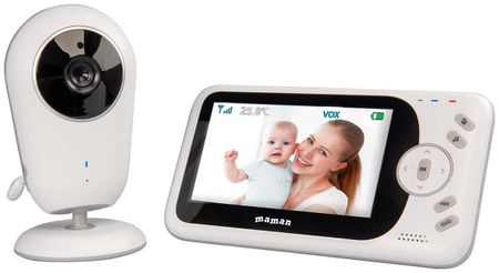 Цифровая видеоняня, беспроводная система видеонаблюдения Maman, модель VB608. Многофункциональный большой монитор с питанием от аккумуляторной батареи дарит свободу передвиженияОсобенности:Цифровая технология передачи данных: высокое качество сигнала и отсутствие помехЗащищенное соединение: вашего ребенка услышите только выАвтоматическая система поиска и настройки каналов связиМонитор с цветным дисплеем диагональю 2 дюйма с высоким разрешениемРежим энергосбережения и голосовой активации VOXРежим Двусторонняя связьРежим Ночное видениеИзмерение температуры в комнатеВосемь колыбельных мелодийИндикация даты, времени; таймер кормления (будильник)Регулировка чувствительности, яркости изображения, уровня громкости звукаДальность до 260 метров на прямой видимостиКомплектность:камера (детский блок), монитор (родительский блок), сетевые адаптеры питания, руководство пользователяХарактеристики:Камера (детский блок): Сенсор: 1 сенсор ночного освещенияИнфракрасные светодиоды: 6 штМонитор (родительский блок):Дисплей: ЖК цветной 4.3 дюйма (10.9 см)Мощность и напряжение адаптера (камера):Входное напряжение: 100-240V, AC, 50-60Hz, 200mAВыходное напряжение: 5V, DC, 1000mAМощность и напряжение адаптера / аккумулятора (монитор)Входное напряжение: 100-240V, AC, 50-60Hz, 200mAВыходное напряжение: 5V, DC, 1000mA или аккумуляторная батарея Li-Polymer 3,7V; 1760 mAhПервоначальное время заряда аккумулятора: не менее 12 часовКоличество каналов: 16Дальность: до 260 метров на открытом пространствеРабочая частота: 2,4 Ггц