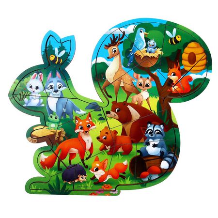 Вкладыш «Лесной мир». Деревянный пазл «Лесной мир» — это увлекательная развивающая игрушка для детей от 3 лет. Игровая доска с вкладышами помогает малышам познакомиться с обитателями леса, развивая при этом логику, моторику и пространственное мышление. Изготовленный из экологичного дерева, пазл безопасен для детей и долговечен в использовании. <b> Особенности</b> <ul> <li> В набор входит 19 элементов с изображениями животных.</li> <li> Игрушка способствует развитию зрительного восприятия и тактильных навыков.</li> <li> Рекомендуется для совместных занятий с родителями, чтобы рассказать ребенку о жизни подводных обитателей.</li> </ul> Игра с деревянными вкладышами — это не только развлечение, но и эффективный способ развития важных навыков. Ребенок учится сопоставлять формы, цвета и изображения, тренируя внимание и память. Яркие иллюстрации зверей пробуждают интерес к природе, а прочный материал обеспечивает безопасность и комфорт во время игры. Собирая пазл, ребенок развивает мелкую моторику, логическое мышление и усидчивость. Совместные занятия с родителями помогают расширить кругозор малыша, рассказывая о животном мире и его обитателях. Игрушка станет отличным подарком для любознательных детей и их родителей, ценящих качественные и развивающие игры.