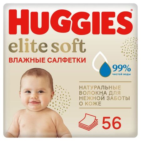 Влажные салфетки Huggies Elite Soft для новорожденных, 56 шт
