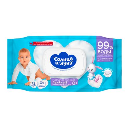 Влажные салфетки Солнце и Луна С отваром ромашки и чистотела 72 шт