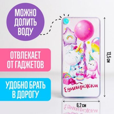 Водная игра с колечками «Единорожки». Водная игра с кольцами — та самая игра, которую многие помнят c детства, только в новом оригинальном оформлении. <b> Особенности игрушки</b> <ul> <li> Нажимайте кнопку, чтобы подбросить колечки вверх в потоке воды. Старайтесь поймать их на палочки.</li> <li> Для игры пригодится ловкость и координация движений, чтобы поймать как можно больше колечек.</li> <li> Игра подходит для одного и двух игроков, можно устраивать соревнования с друзьями, запуская колечки по очереди.</li> <li> Компактную игрушку удобно держать в руках, ее можно взять с собой в дорогу.</li> </ul> <b> Польза игрушки</b> Интерактивная детская игра развивает внимательность, логику, мышление, а также мелкую моторику рук. <b> Внимание!</b> При необходимости или испарении воды вы можете добавить обычную воду через отверстие c обратной стороны игрушки.