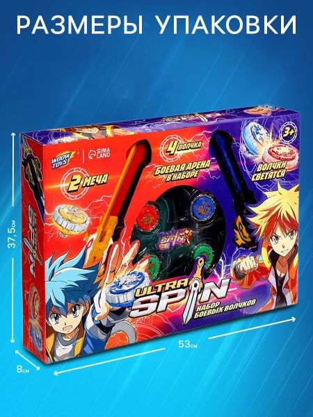 Волчки с мечом ULTRA SPIN «Сражение гладиаторов», набор 4 шт., с устройством запуска и ареной. Вступить в захватывающую битву и стать чемпионом игры малыш сможет с набором волчков ULTRA SPIN «Сражение гладиаторов». Игрушка подарит море позитивных эмоций, увлекательное времяпрепровождение, а также поможет развить важные навыки. <b> Особенности</b> <ul> <li> Яркий дизайн: волчки выполнены в красочных цветах, поэтому привлекут внимание малыша.</li> <li> В наборе 4 волчка, 2 устройства для запуска, арена: малыш сможет устроить настоящие соревнования.</li> <li> Развитие навыков: игра с волчком развивает координацию движений, реакцию, стратегическое мышление и целеустремленность.</li> <li> Игрушка рекомендована для детей от 3 лет.</li> </ul> <b> Играем с пользой</b> Игра с волчком помогает детям увлекательно провести время и приносит пользу. <ul> <li> Развивает координацию движений.</li> <li> Тренирует реакцию.</li> <li> Учит стратегическому мышлению.</li> <li> Способствует развитию социальных навыков.</li> </ul>