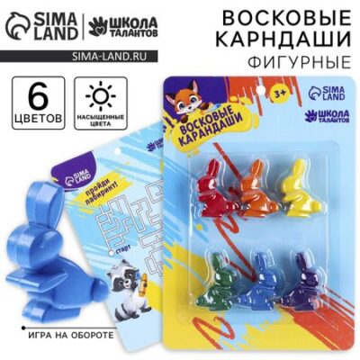 Восковые карандаши «Зайки», набор 6 цветов. Набор восковых мелков «Зайки» — это творческое решение для рисования и развлечения. В комплекте вы найдете 6 разноцветных фигурных мелков, которые подойдут для детского творчества дома, в школе или на отдыхе. <b> Преимущества</b> <ul> <li> Удобная фигурная форма делает мелки интересными и приятными для детских рук.</li> <li> Яркие цвета вдохновляют на создание уникальных рисунков и поделок.</li> <li> Мелки изготовлены из воска, что обеспечивает плавное нанесение цвета на бумагу.</li> <li> Компактная упаковка — удобно брать с собой.</li> </ul> Идеально подходят для рисования, раскрашивания и создания декоративных элементов. Набор станет отличным вариантом для детского творчества, развития мелкой моторики и фантазии. <b> Преимущества</b> <ul> <li> Простота в использовании для детей всех возрастов.</li> <li> Эстетичный дизайн и привлекательные формы мелков.</li> <li> Отсутствие штрихкода делает их отличным выбором для индивидуального использования.</li> </ul> Создайте атмосферу творчества и радости с набором восковых мелков «Зайки»!