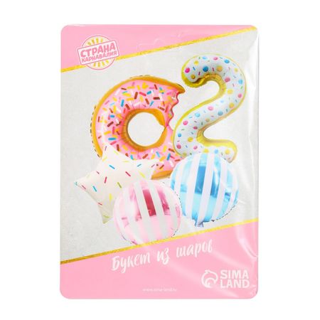 Воздушные шары, букет «Цифра 2», набор 5 шт.. Подарите своему малышу незабываемый день рождения с ярким и оригинальным букетом из шаров от «Страны Карнавалия»! Набор из 5 фольгированных шаров в виде цифры, пончика и разноцветных звезд станет настоящим украшением праздника. <b> Способы использования </b> <ul> <li> воздушные шары украсят детский праздник; </li> <li> букет шаров «2 года, пончик» можно использовать для фотосессии в качестве реквизита; </li> <li> также из воздушных шаров можно сделать оригинальный букет для поздравления. Для этого используйте специальные палочки-подставки. </li> </ul> <b> Особенности </b> <ul> <li> подойдет для надувания как гелием, так и обычным воздухом с помощью насоса; </li> <li> перед надуванием шара гелием сами шары необходимо обработать специальным составом, чтобы увеличить продолжительность полета; </li> <li> избегайте воздействия прямых солнечных лучей, повышенной влажности и перепада температур. Чтобы воздушный шар не деформировался. </li> </ul> Сделайте праздник ярче с воздушными шарами «Страна Карнавалия»!
