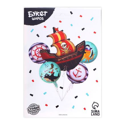 Воздушные шары, букет «Пиратский», набор 5 шт.. Набор фольгированных шаров поможет оформить день рождения мальчика в пиратском стиле! Набор подойдет для создания букета из шаров, который отлично будет выглядеть как дома, так и в помещении для праздников. <b> Особенности</b> <ul> <li> Набор состоит из 5 шаров разного дизайна.</li> <li> Шары подходят для надувания воздухом и гелием.</li> <li> Преимущество фольгированных шаров — перед надуванием их не нужно обрабатывать специальным составом.</li> <li> Чтобы шар не деформировался избегайте воздействия прямых солнечных лучей, повышенной влажности и перепада температуры.</li> </ul> <b> Идеальны для любого случая</b> <ul> <li> Шары станут отличным дополнением к подарку ребенку на день рождения.</li> <li> С помощью набора шаров можно легко и быстро оформить фотозону.</li> </ul>