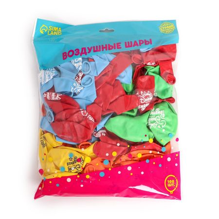 Воздушные шары латексные 12" «С днем рождения», 100 шт.. Воздушные шары способны вызывать яркие эмоции! Они прекрасно подойдут для оформления любого торжества и настроят всех на позитивный лад. Наполните их воздухом или гелием, разбросайте по полу, подвесьте под потолок или соберите в фонтаны. Фантазируйте, и помещение наполнится неповторимыми красками! Вы удивитесь, узнав, какой восторг могут вызвать разноцветные шарики с очаровательными рисунками.