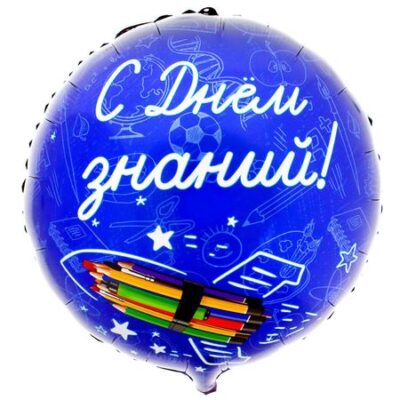 Воздушный шар фольгированный 18" «С Днем знаний», круг, с подложкой. Фольгированный шар в виде круга с надписью «С Днем знаний!» поможет оформить стадион или актовый зал школы для торжественной линейки в честь 1 Сентября. Также шар может стать дополнением к подарку для ребенка, который пошел в первый класс. <b> Особенности</b> <ul> <li> Размер шара — 18 дюймов (45 см).</li> <li> Шар можно надувать воздухом и гелием.</li> <li> Преимущество фольгированных шаров — их не нужно обрабатывать специальным раствором перед надуванием гелием.</li> <li> Избегайте воздействия прямых солнечных лучей, повышенной влажности и перепада температуры, чтобы шар не деформировался.</li> </ul>
