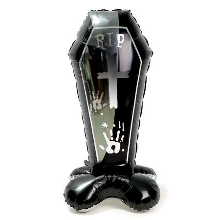 Воздушный шар фольгированный 58" «Черный гроб на подставке», под воздух. Шар фольгированный 58" «Черный гроб» — идеальный выбор для создания атмосферы на Хэллоуин или тематическую вечеринку. Этот шар станет центральным элементом декора, подчеркивающим мистический стиль мероприятия. <b> Будьте внимательны</b> : шар надувается только воздухом. <b> Особенности шара</b> <ul> <li> Большой размер 58 дюйма, привлекающий внимание и создающий впечатляющий визуальный эффект.</li> <li> Высокое качество материала гарантирует долговечность и прочность, устойчивую к случайным повреждениям.</li> <li> Универсальность использования: подходит как для помещений, так и для уличных мероприятий.</li> </ul> <b> Идеально для Хэллоуина</b> Этот шар станет ключевым элементом в оформлении любой вечеринки, добавив мистики и загадочности. Он прекрасно сочетается с другими украшениями, создавая тематический антураж.