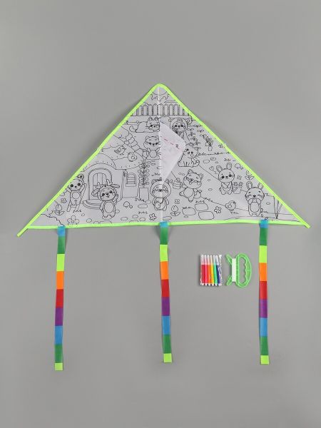 Воздушный змей — раскраска «Зверятки», 80 см, 6 фломастеров. Воздушный змей-раскраска «Зверятки» станет замечательным выбором для творчества и активного отдыха на свежем воздухе. Он идеально подойдет для детей от 3 лет, позволяя весело проводить время на прогулке или во время пикника с семьей. <b> Особенности</b> <ul> <li> Простота использования — запуск возможен даже при небольшом ветре.</li> <li> Змей-раскраска и 6 ярких фломастеров для творчества.</li> <li> Длина лески 30 метров позволяет змею подниматься высоко в небо, что делает игру еще более захватывающей.</li> <li> Безопасные материалы гарантируют комфортное использование детьми.</li> </ul> <b> Польза для ребенка</b> Игра с воздушным змеем помогает развивать крупную моторику, ловкость и пространственное мышление. Это увлекательное развлечение стимулирует детей больше двигаться, проводить время на свежем воздухе и исследовать окружающий мир. Воздушный змей — это подарок, который станет источником радости для ребенка и поможет всей семье насладиться незабываемыми моментами на свежем воздухе.