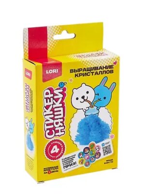 Выращивание кристаллов Стикерняшки «Яркий бабл ти», голубой кристалл. Комплектация: Раствор карбамида и поливинилового спирта с красителем, поддон для выращивания, картонная основа, декоративный картонный элемент, инструкция, стикеры 4 шт.