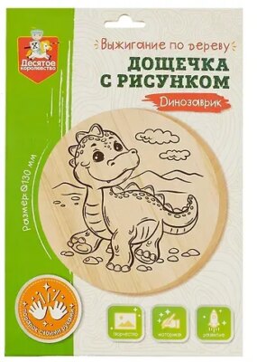 С помощью дощечки для выжигания «Динозаврик» ваш ребёнок сможет смастерить необычный сувенир с доисторическим животным!