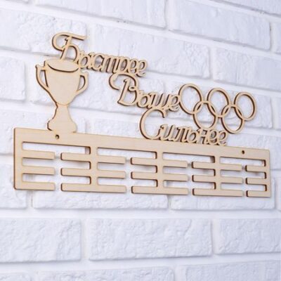 Заготовка для творчества медальница «Быстрее выше сильнее», 45×22 см. Медальница с полкой подходит для медалей и жетонов на лентах, а также для кубков и грамот. Медальница с полкой изготовлена из фанеры. Произведено в России.