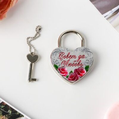 Замок свадебный с ключом «Совет да любовь».. Замок для торжественной свадебной традиции — это символ любви. Навесной замок любви на свадьбе становится символом нерушимого союза, заключенного влюбленными в этот день. По традиции замок вешается на мост, загадывается желание о счастливой семейной жизни, а ключи от него выбрасываются в реку, через левое плечо. Это делается для того, чтобы никто никогда не смог открыть этот замок и нарушить клятву, данную влюбленными. Свадебный замок можно повесить на мост по традиции или на дерево в специалных парках или аллеях молодожен, которые есть во многих городах. Замок навесной свадебный имеет в комплекте ключик, замок закрывается и открывается. Традиция закрывать замок на свадьбу объединяет сердца мужа и жены навсегда. Свадебный декоративный замочек будет отлично смотреться на фотосессии и видео.