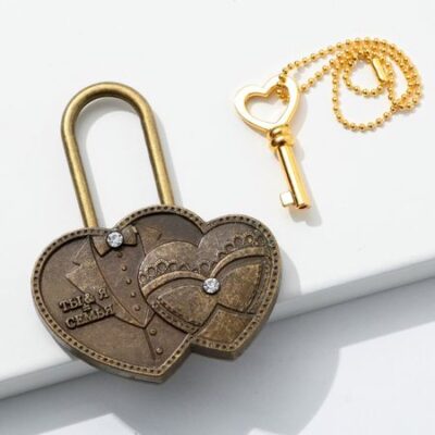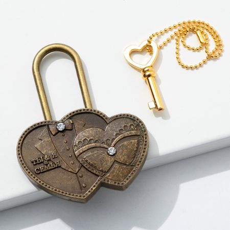 Замок свадебный с ключом «Ты и Я = Семья».. Замок для торжественной свадебной традиции — это символ любви. Навесной замок любви на свадьбе становится символом нерушимого союза, заключенного влюбленными в этот день. По традиции замок вешается на мост, загадывается желание о счастливой семейной жизни, а ключи от него выбрасываются в реку, через левое плечо. Это делается для того, чтобы никто никогда не смог открыть этот замок и нарушить клятву, данную влюбленными. Свадебный замок можно повесить на мост по традиции или на дерево в специалных парках или аллеях молодожен, которые есть во многих городах. Замок навесной свадебный имеет в комплекте ключик, замок закрывается и открывается. Традиция закрывать замок на свадьбу объединяет сердца мужа и жены навсегда. Свадебный декоративный замочек будет отлично смотреться на фотосессии и видео.