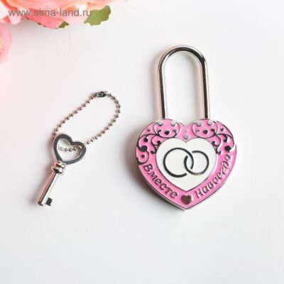 Замок свадебный с ключом любви «Вместе навсегда».. Замок для торжественной свадебной традиции — это символ любви. Навесной замок любви на свадьбе становится символом нерушимого союза, заключенного влюбленными в этот день. По традиции замок вешается на мост, загадывается желание о счастливой семейной жизни, а ключи от него выбрасываются в реку, через левое плечо. Это делается для того, чтобы никто никогда не смог открыть этот замок и нарушить клятву, данную влюбленными. Свадебный замок можно повесить на мост по традиции или на дерево в специалных парках или аллеях молодожен, которые есть во многих городах. Замок навесной свадебный имеет в комплекте ключик, замок закрывается и открывается. Традиция закрывать замок на свадьбу объединяет сердца мужа и жены навсегда. Свадебный декоративный замочек будет отлично смотреться на фотосессии и видео.