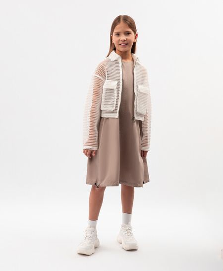 Фактурные ткани, материалы с сетчатой структурой — именно они возглавляют Тор 3 главных трендов сезона, создавая новые тактильные ощущения и визуальные образы. Жакет из сетки с застежкой на молнию — отражение модных тенденций! Он прекрасно дополнит и повседневные, и нарядные аутфиты, сделает любые комплекты сложнее, интереснее, ярче. Жакет имеет накладные карманы с клапанами. Утяжка по низу позволяет регулировать силуэт: оставить жакет прямым или придать ему форму бомбера.