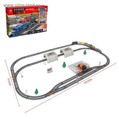 Станьте машинистом миниатюрной модели товарного состава на своей железной дороге. Во время путешествия локомотив пройдёт несколько развилок, два туннеля и прибудет прямо на грузовую платформу с краном. С его помощью можно переносить легковые машинки прямо в вагон-автовоз. Загрузите транспорт по полной и отправьтесь в очередной рейс!Основные характеристикиОбщая протяжённость пути: 549 см.Размер железнодорожного полотна: 125,5 × 73,5 см.Ширина пути: 3,5 см.Ширина колеи поезда: 2,5 см.Размер поезда: 12,5 × 3 × 4,2 см.Размер машинки: 4 × 1,5 × 1,2 см.Работа от 2 батареек типа ААA (приобретаются отдельно).В комплект входит:локомотив, 1 шт.;грузовой вагон, 2 шт.;цистерна, 1 шт.;автовоз, 1 шт.;туннель, 2 шт.;легковые машинки, 4 шт.;деревья, 3 шт.;автопогрузчик, 1 шт.;фонарный столб, 1 шт.;рекламный щит, 1 шт.;знак, 2 шт.;семафор, 1 шт.;шлагбаум, 2 шт.;переезд, 2 шт.;набор рельсов для создания железнодорожного полотна.Для детей старше 3 лет.