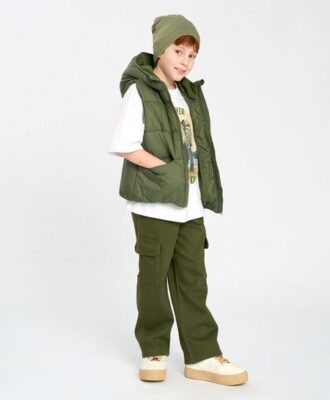Жилет хаки из плащевки не промокает. Утеплитель синтепон 150 г/м2, гладкая текстильная подкладка и глубокий капюшон с высоким воротом делают модель идеальной для весны и осени. В дутой жилетке будет комфортно даже в +10°С. В ней можно отправиться на прогулку, шопинг, в путешествие или на учебу. В карманах в шве ребенок может греть руки или хранить мелочи. Модель застегивается на молнию с защитой от защемления. Крой прямой — не прилегает, не сковывает. Для безопасности имеются светоотражающие элементы и адресник, для практичности – резинка по нижнему краю. Жилет на подростка в оттенке хризолит универсальный – подойдет мальчикам и девочкам.