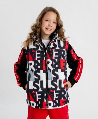 Утепленный стёганый жилет. Выполнен из полиэстера. Он согреет девочку в холодные дни благодаря утеплителю. А высокий ворот не пропустит ветер. Это идеальный выбор для модниц, которые любят яркие и стильные вещи. Жилет принтованный, с карманами и светоотражающими элементами, что делает его не только красивым, но и функциональным.