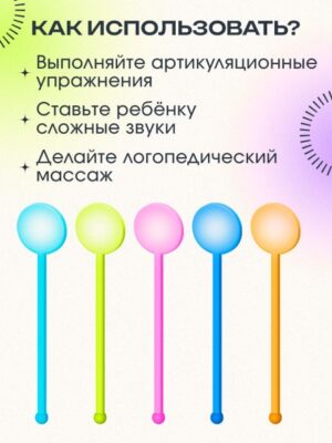 Зондозаменители логопедические «Кругляши», 10 шт, 3+. Тренируйте речевое произношение с развивающим набором «Кругляши». С яркими инструментами малыш будет увлекательно тренировать дыхание и артикулировать звуки. <b> Для чего использовать</b> <ul> <li> Для артикуляционных упражнений.</li> <li> Для постановки звуков.</li> <li> Для логопедического массажа.</li> </ul> <b> Особенности набора</b> <ul> <li> Яркие инструменты выполнены из качественного и плотного пластика.</li> <li> Товар сертифицирован и соответствует всем стандартам качества и безопасности.</li> <li> Игрушки легко обрабатывать.</li> <li> Размер зондозаменителя: 3 × 0,5 × 17,5 см.</li> <li> Наконечник в виде шарика разных диаметров традиционно используется для постановки звука «р».</li> <li> Инструмент предназначен для одноразового использования.</li> <li> Товар рекомендован детям от 3 лет.</li> </ul>