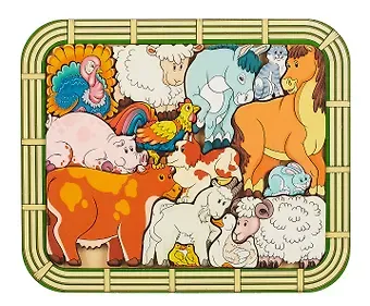 Деревянная доска «Переполох на ферме» — это игровая панель для развития мелкой моторики, внимания, усидчивости и воображения Вашего малыша. Попросите ребенка очень внимательно рассмотреть пазл и назвать всех животных и птиц, которых он видит. Зачем человек их разводит? Какую пользу они приносят? Чем питаются? Где живут? Какие еще домашние животные Вам известны? Достаньте элементы из рамки, разложите их на столе. Предложите ребенку собрать пазл сначала по образцу, а потом по памяти.