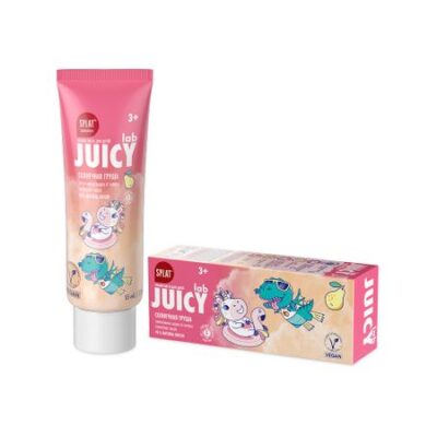 Клинически доказано, что детская паста SPLAT® Juicy® LAB, бережно очищает, глубоко восстанавливает и укрепляет твердые ткани зубов, эффективно защищает от кариеса и налета.96% натуральных компонентов, среди которых: волшебный фтор — 1000ppm, папаин, экстракт лакричника и цинк.Вкус солнечной груши окунет в лето и наполнит день яркими эмоциями.А еще она с блестками!