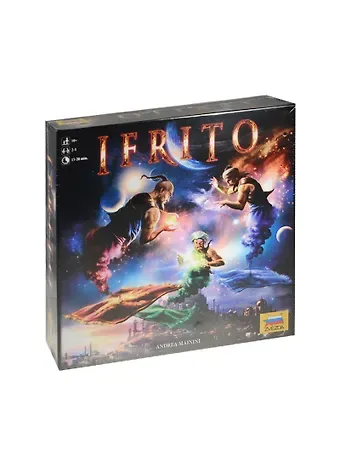 В игре «Ифрито» игрокам предстоит войти в роль коварных учеников великого мага. Первый игрок, который пленит 9 джиннов или захватит 3 ковра-самолёта своих соперников, выигрывает партию и становится новым владыкой мира. А пленить джиннов не так-то и просто. Но у вас есть несколько могущественных заклинаний. В свой ход вы можете использовать только одно из них — запустить новый ковёр-самолёт, пролететь на уже существующем ковре или атаковать ковёр-самолёт противника и пленить всех джинном на нём.