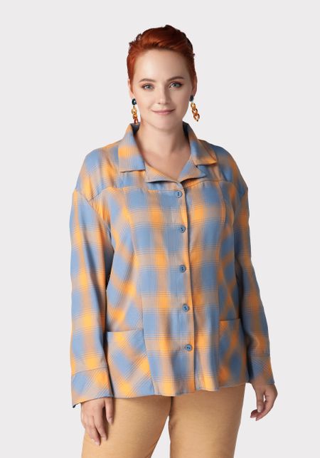 Блуза в клетку с накладными карманами