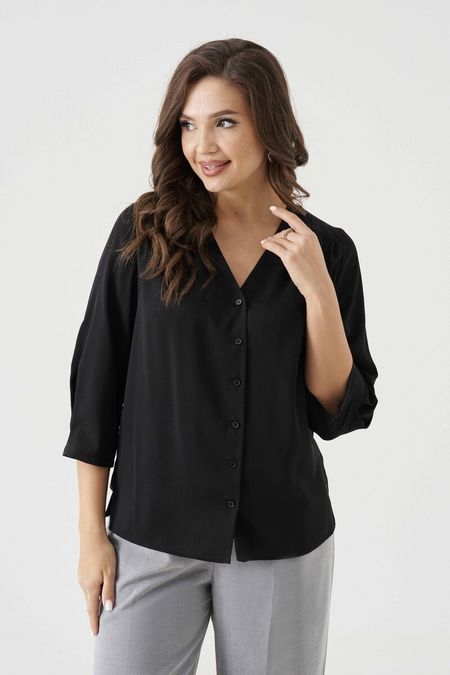 Блуза женская для повседневной носки. Изделие прямого силуэта с втачным рукавом с длиной 3/4. Горловина изделия V-образная. В блузке имеется центральная бортовая застежка на обметанные петли и пуговицы. По переду декоративные складки в плечевых швах. Длина блузы классическая. Красивая и нежная блузка, которая будет радовать вас своим изумительным видом.<br> <br> Параметры изделия:<br><b>Размер 42164</b><br>Блузка: Длина изделия — 62см, Длина рукава — 46см, Ширина плеча — 9.4см, Ширина по груди — 50см, Ширина по низу — 51см, Ширина рукава — 18.5см;<br/><b>Размер 44164</b><br>Блузка: Длина изделия — 62см, Длина рукава — 46см, Ширина плеча — 9.5см, Ширина по груди — 52см, Ширина по низу — 53см, Ширина рукава — 19.5см;<br/>