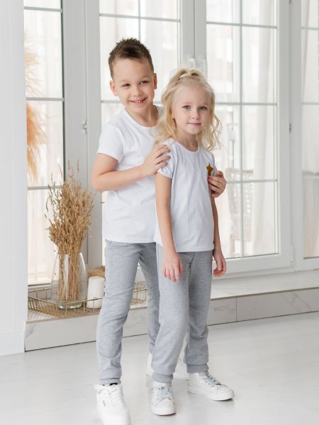 Зауженные модные брюки из футера серого цвета . С боковыми карманами и манжетами снизу. Изделие выполнено из трикотажа премиального качества — ПЕНЬЕ, с содержанием хлопка более 92%