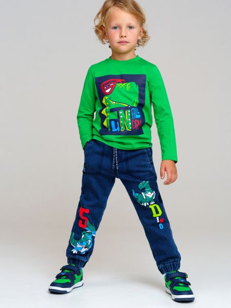Джинсы детские с флисом для мальчика. Модные утепленные джинсы jogger fit на резинке со шнурком. Боковые карманы. Модель из капсульной коллекции DINO CLUB (ДИНО КЛАБ). Соберите полный образ в едином стиле! Джинсы будут актуальны для детского сада, в садик.