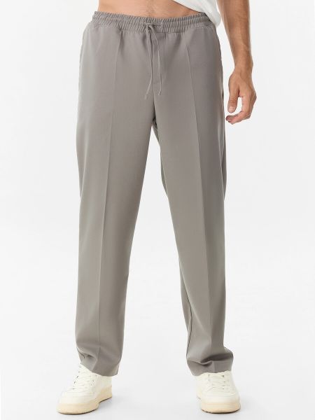 Брюки мужские изготовлены из ткани (поливискоза). Брюки зауженные книзу, посадка средняя. Пояс отрезной с эластичной тесьмой внутри. С внешней стороны пробиты петли и втянут шнур из основного полотна. На левой детали переда имитация гульфика. Карманы в боковых швах. Подкладка карманов из основного полотна. На правой детали спинки карман-обманка. Нижние срезы брюк обработаны потайным швом.