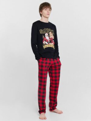 Эта удобная мужская пижама состоит из лонгслива и брюк, выполненных из высококачественной кулирки — натурального материала из чистого хлопка, который