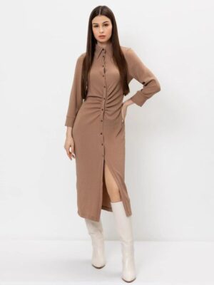 Однотонное платье женское с длинными рукавами, прилегающего силуэта из высококачественного материала. Платье полуприлегающего силуэта из ткани.