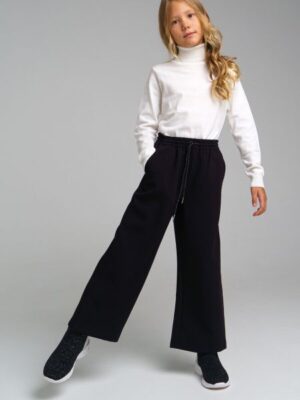 Школьные текстильные брюки-кюлоты для девочки подростка. Кюлоты (штаны) свободного силуэта (свободные) на резинке со шнурком идеально подойдут в школу.