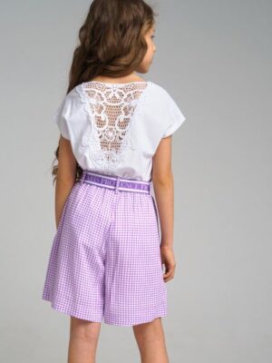 Футболка из качественного и приятного на ощупь трикотажа джерси. Перед и спинка декорированы объемным кружевом. Высокое содержание хлопка 95%.