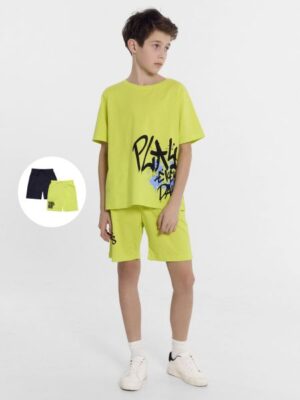 Шорты для мальчиков мультипак (2 шт.) из 100% хлопка. Модель длиной до колена. Спереди есть функциональные карманы «хулиганы». Пояс с эластичной резиной