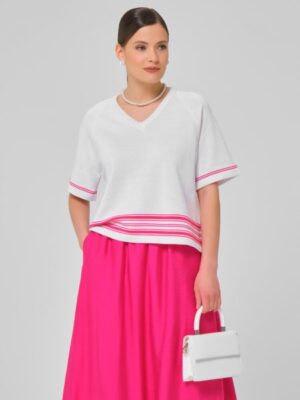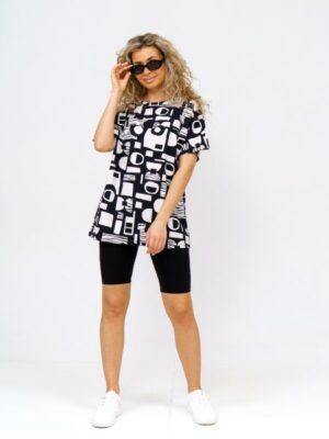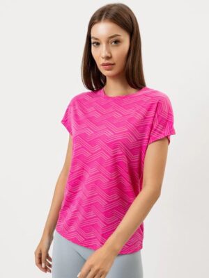 Спортивная трикотажная футболка женская прямого силуэта. В составе полотна — натуральная вискоза и небольшое количество полиэстера, который повышает износостойкость