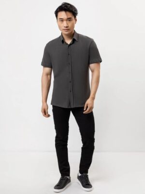 Сорочка верхняя мужская изготовлена из трикотажного полотна. Модель прямого силуэта, длиной до середины бедер. Рукава втачные короткие. Горловина округлой