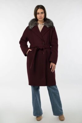 Пальто женское утепленное (пояс)Мех натуральный (чернобурая лисица), отстегивается EL PODIO