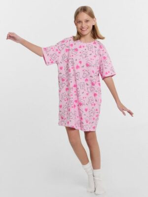 Очаровательная ночная сорочка для девочки — идеальный выбор для удобства и сладких снов! Эта модель прямого силуэта с круглым вырезом горловины и