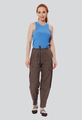 Ультрамодные стильные брюки из смесовой натуральной ткани с накладными карманами и рельефными швами с отстрочкой. На линии бедра пришит клапан.