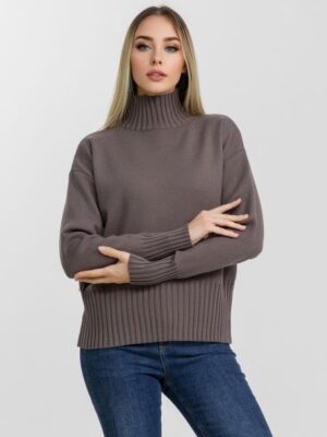 Однотонное платье женское с длинными рукавами, прилегающего силуэта из высококачественного хлопка в рубчик. Вырез круглый, с воротником-стойкой.