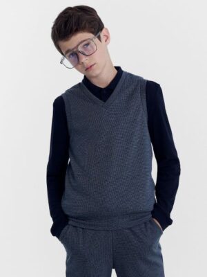 Школьный жилет для мальчиков прямого силуэта — идеальный элемент гардероба, который сочетает в себе элегантность и практичность. Безрукавка обеспечивает