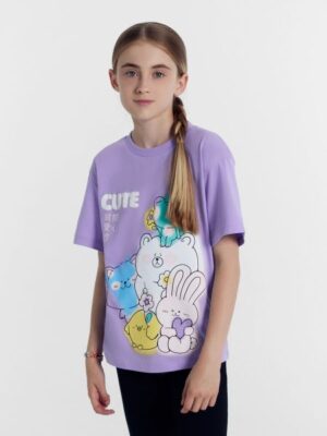 Стильная детская футболка для девочек из высококачественного хлопка. Модель прямого силуэта. Рукава короткие, линия плеча спущена. Горловина круглой формы из рибаны.